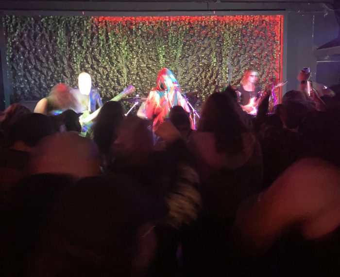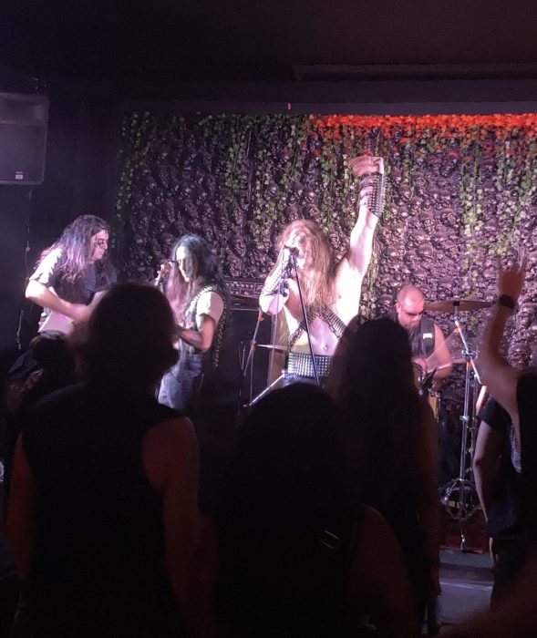 Sex Pill opened the show playing Japanese style noisy punk. (I appreciated the singer tossing out a nod to Japanese legends GISM but including a couple lines of “ENDLESS BLOCKADES FOR THE PUSSYFOOTER!” during their last song) Youthful and energetic and having a lot of fun, I really enjoyed my first time hearing them. Next up was 3 piece, all female death metal/thrash band Merciless Savagery. Very tight band for a 3 piece. Reminds of Venom, Imprecation, Morbosidad, stuff like that. I can see them being popular here in Houston as they evolve.